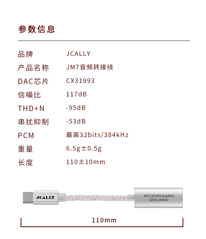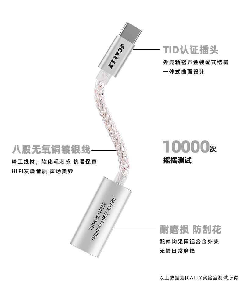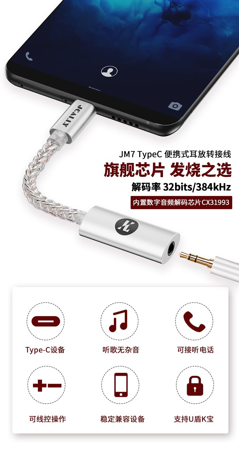 JCALLY杰仕声JM7是一款集高颜值与高性能于一身的数字音频转接头。它不仅外观精致、便携实用,更在音质表现上达到了专业级水准,是音乐发烧友和追求高品质音频体验用户的理想之选。