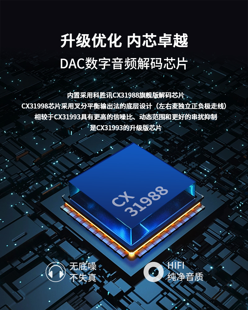 - 搭载 CX31988 旗舰级音频芯片,全面提升解码能力